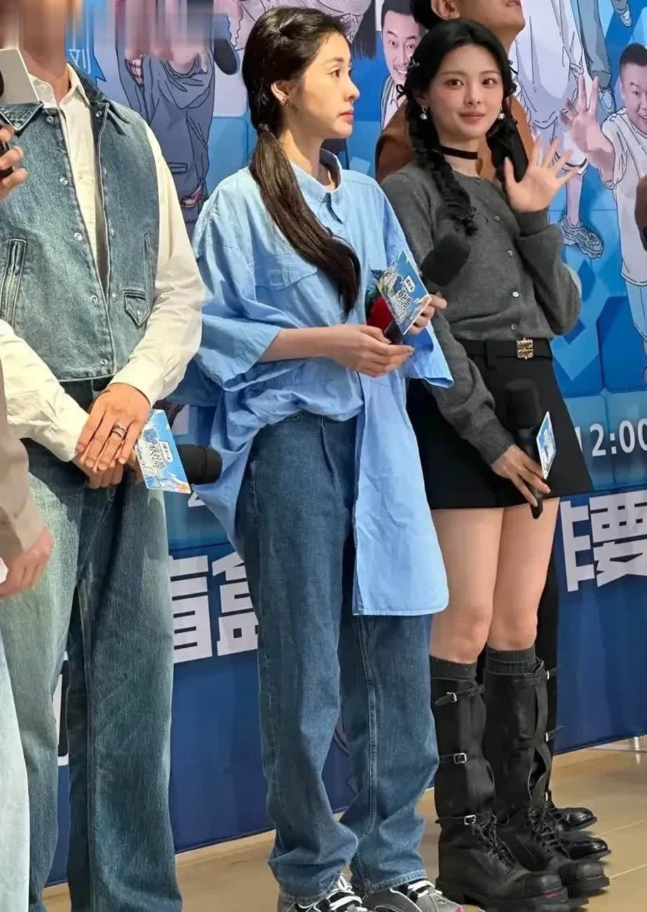 张碧晨凭借出色唱功与磁性嗓音出圈,身材高挑,五官精致小巧。此次活动现场,她身着短袖衬衫搭配牛仔裤,十分日常亲切,与之前舞台上温柔淑女或冷艳女王的穿搭相比,牛仔裤配低马尾的装扮更为低调接地气。